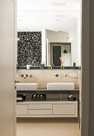 Neugestaltung eines bestehenden Dachgeschoßausbaues aus den 1990er Jahren nach den Bedürfnissen und Wünschen der Auftraggeber, einschl. Grundrissänderung, Innenraumgestaltung einschl. Möbelentwurf, Licht- und Farbkonzept soiwe die Integration der Kunst in das Gesamtensemble